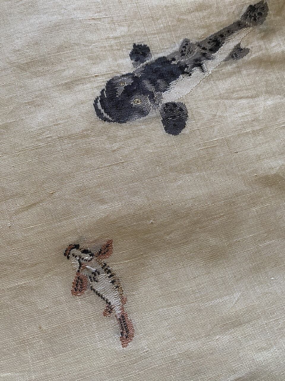 麻 織り柄 鯉やむぢな藻 名古屋帯