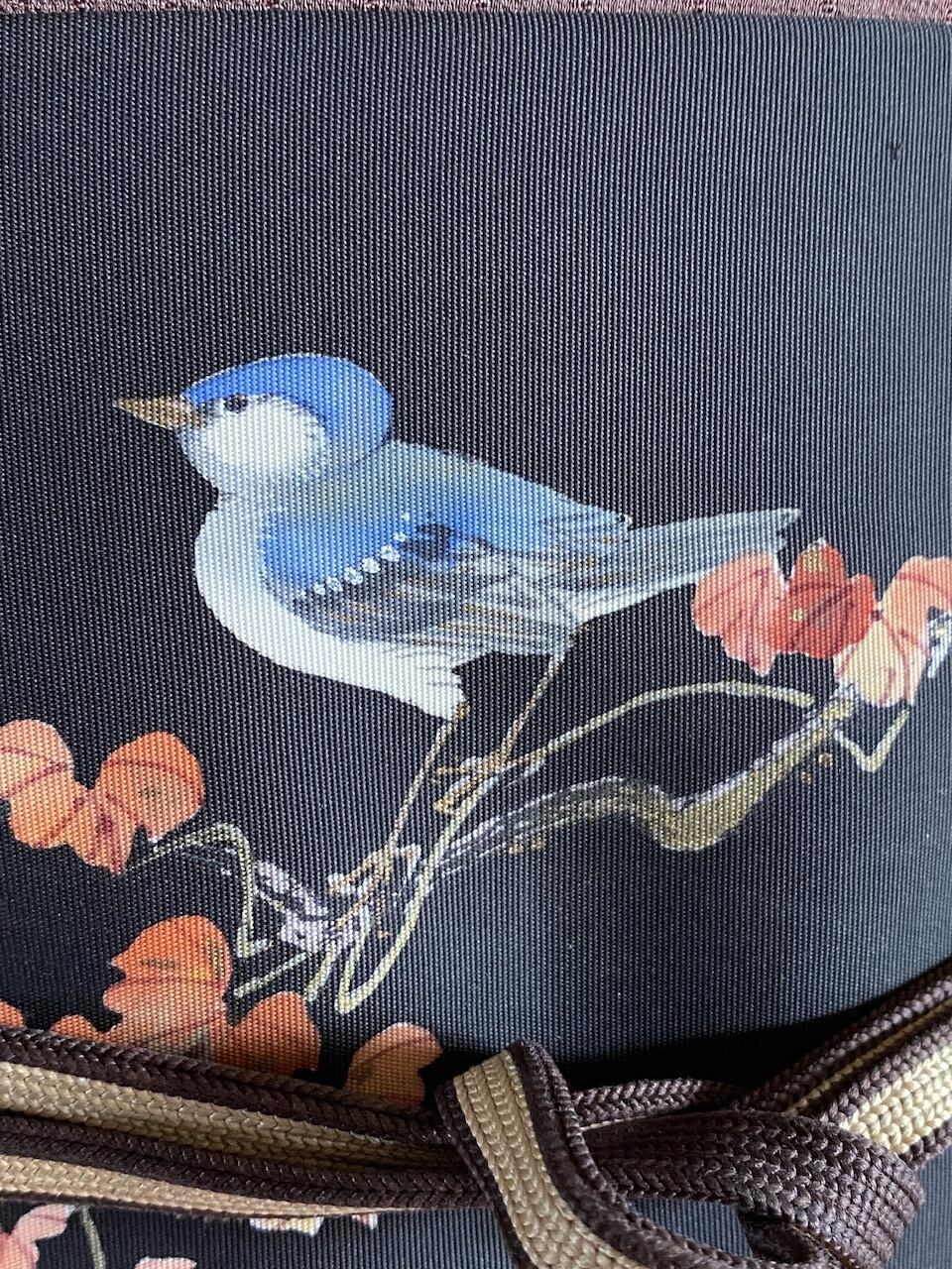 塩瀬の染め帯 青い鳥、もみぢ、カラスウリ