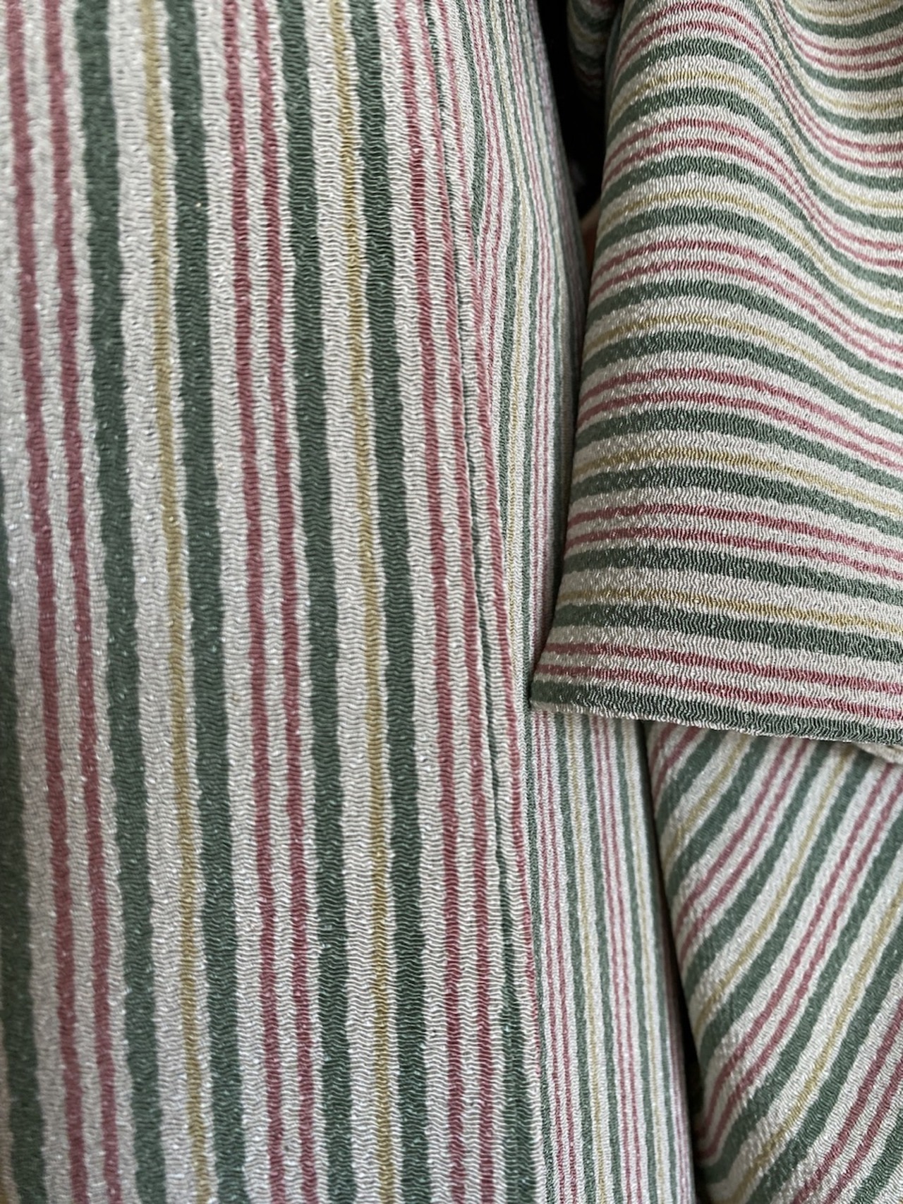 縞 縮緬 単衣 サイズあり ペパーミントグリーン、ピンク