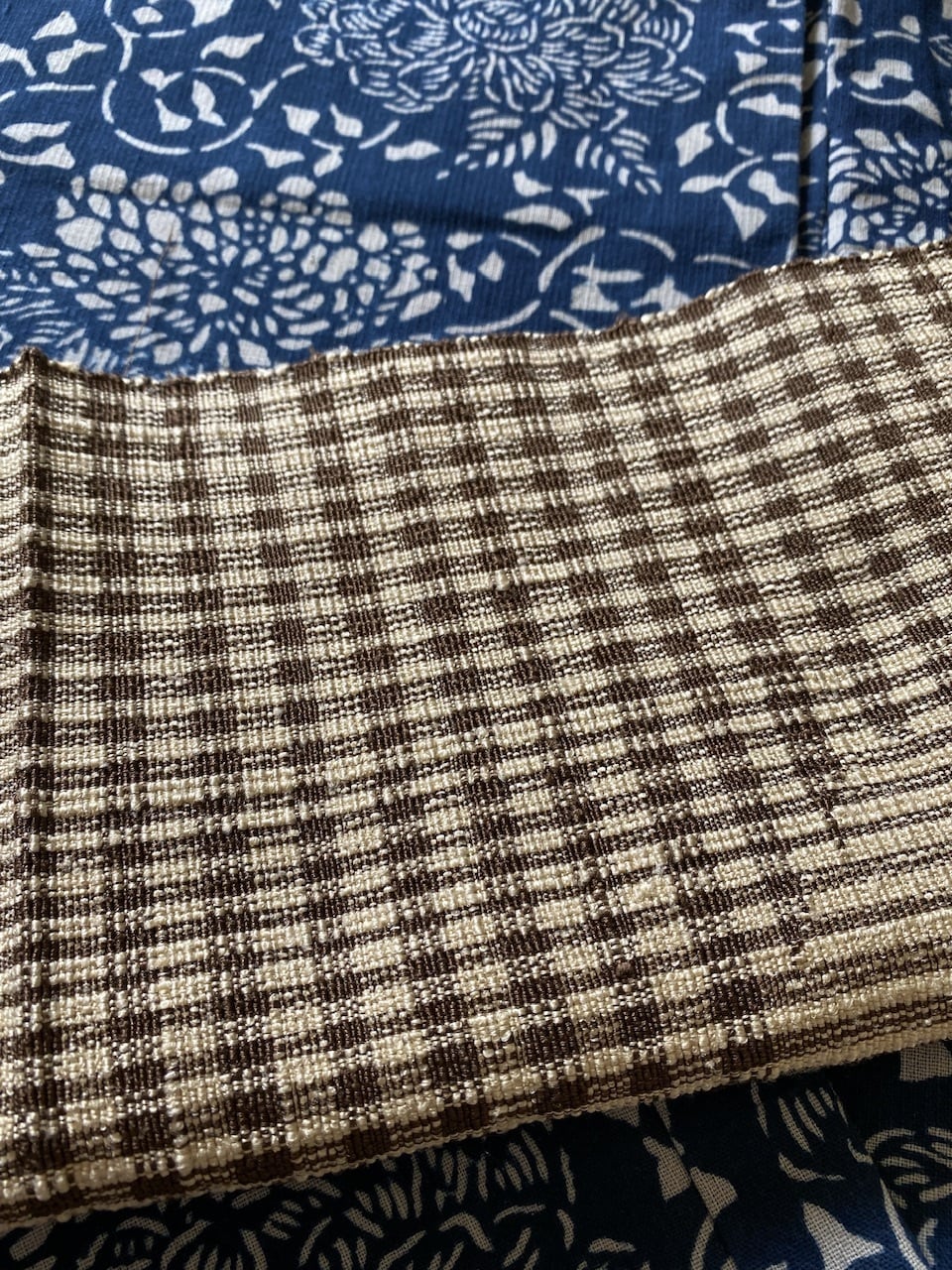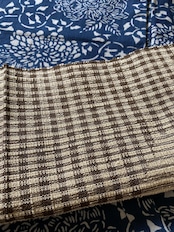 織りの名古屋帯 ベージュ、茶 格子