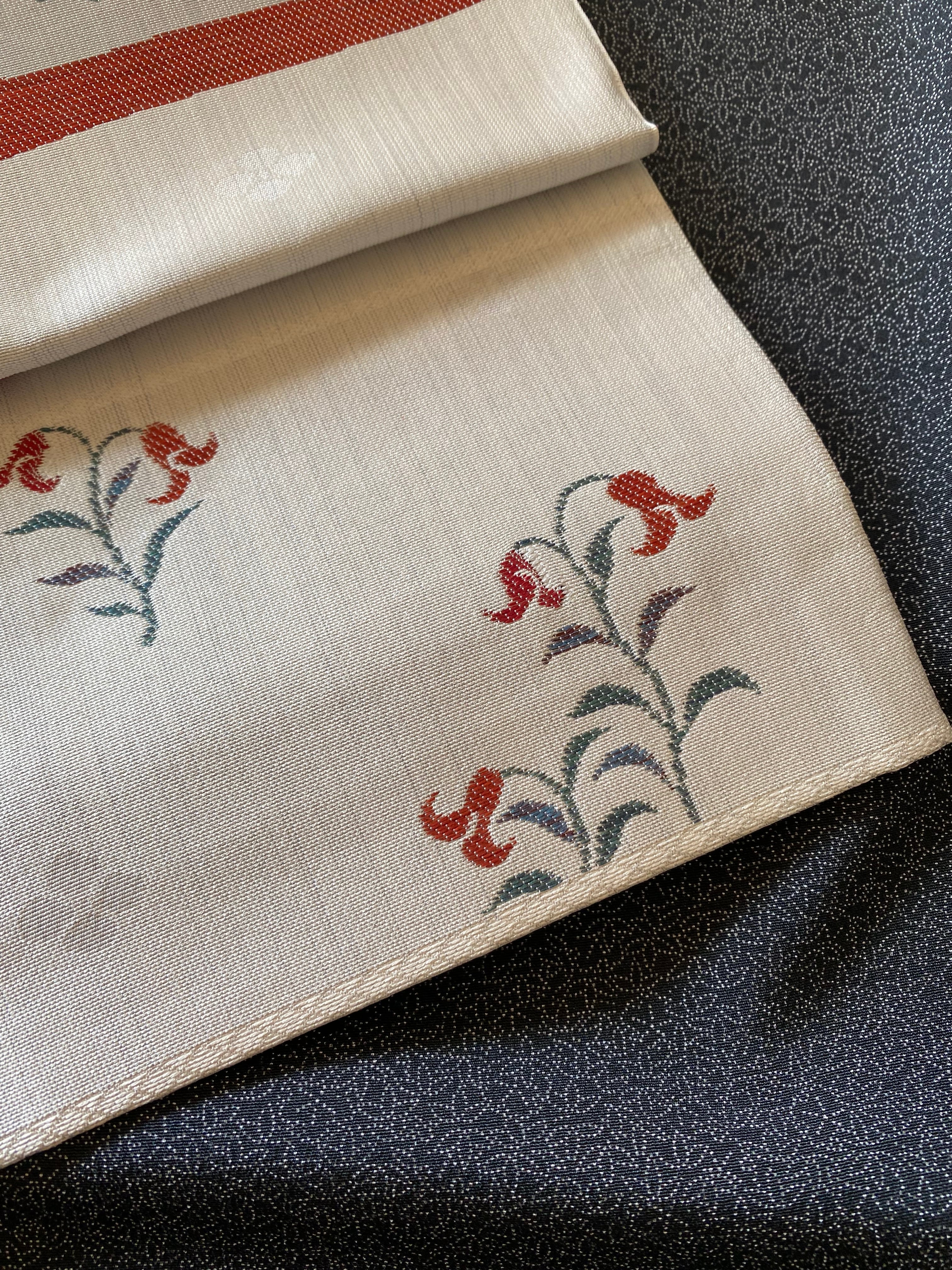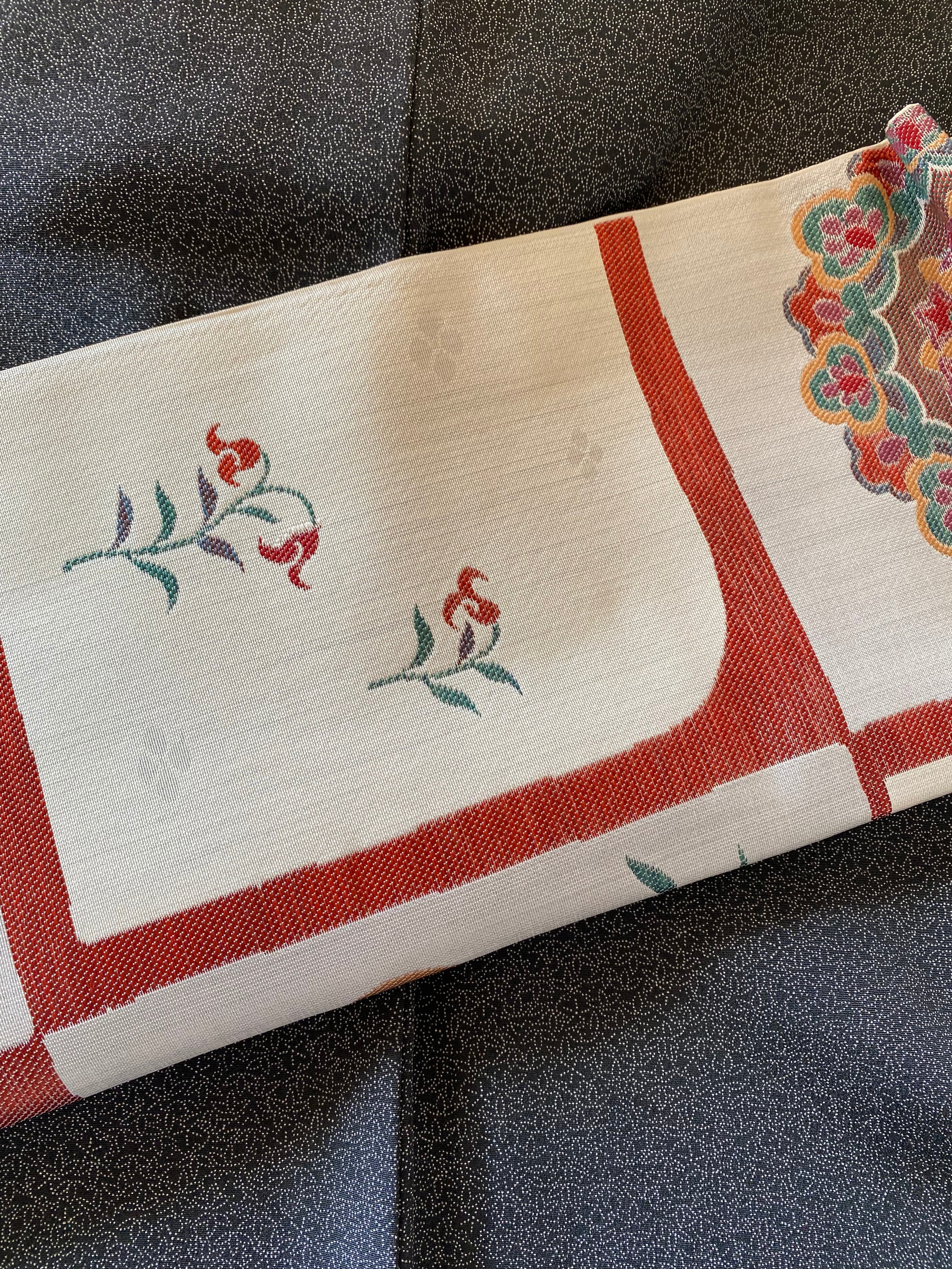 弥究路 草木染め 織り 孔雀花正倉院 袋帯