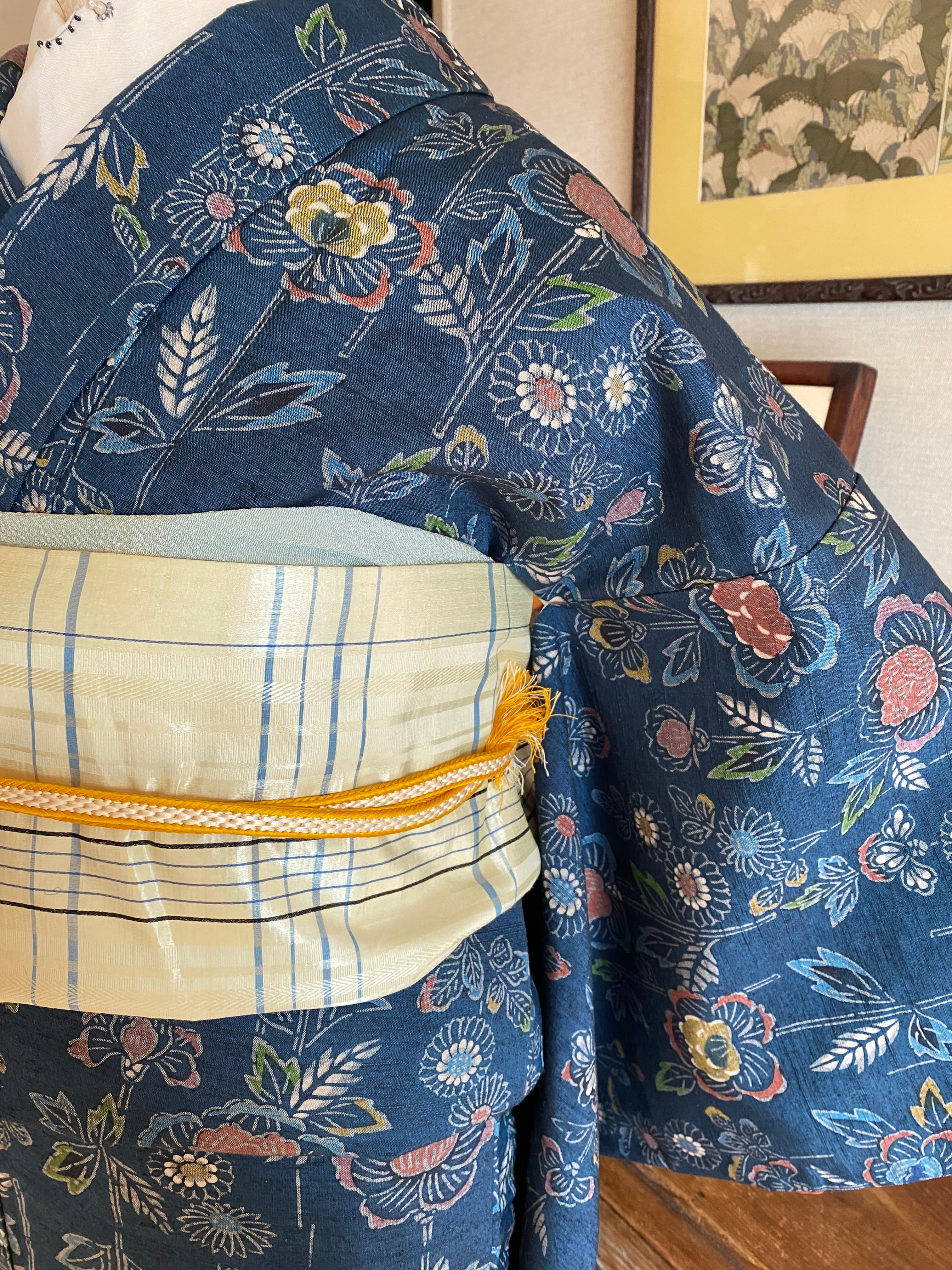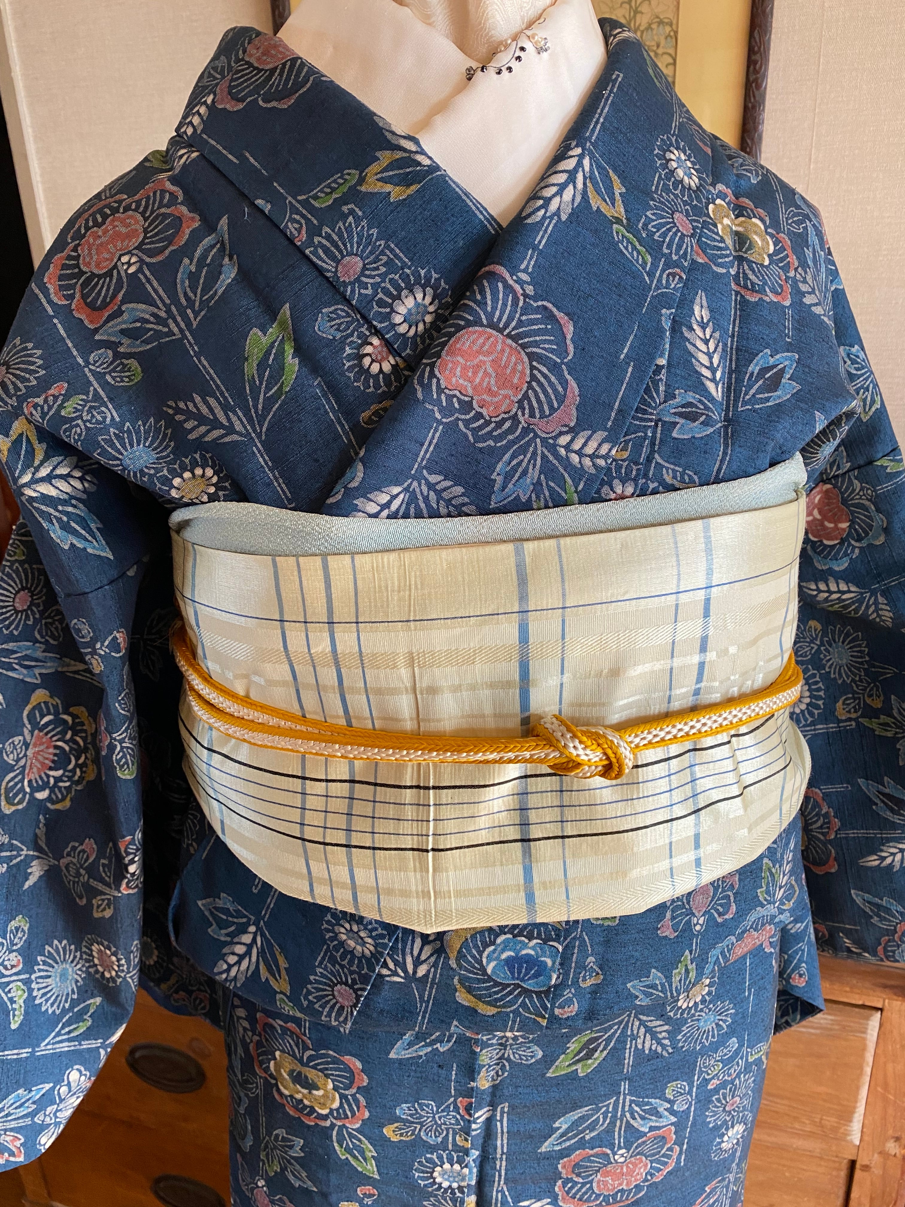 格子の方は着用に気になる点は感じられないと思いますが、ちょっと昔のお帯、アンティークお好きな方におススメします。