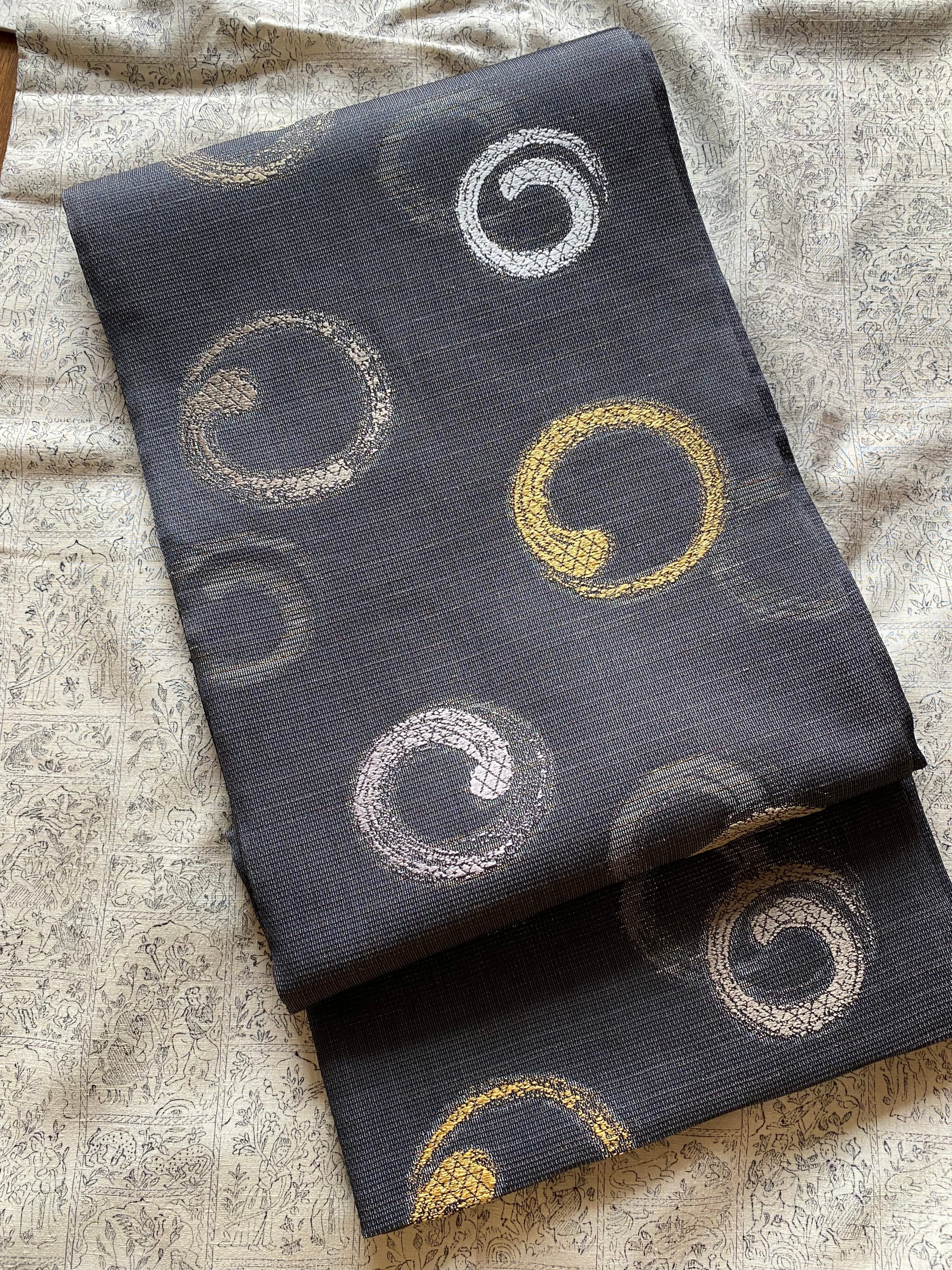 カッコよい渋くおしゃれな織りの六通袋帯。