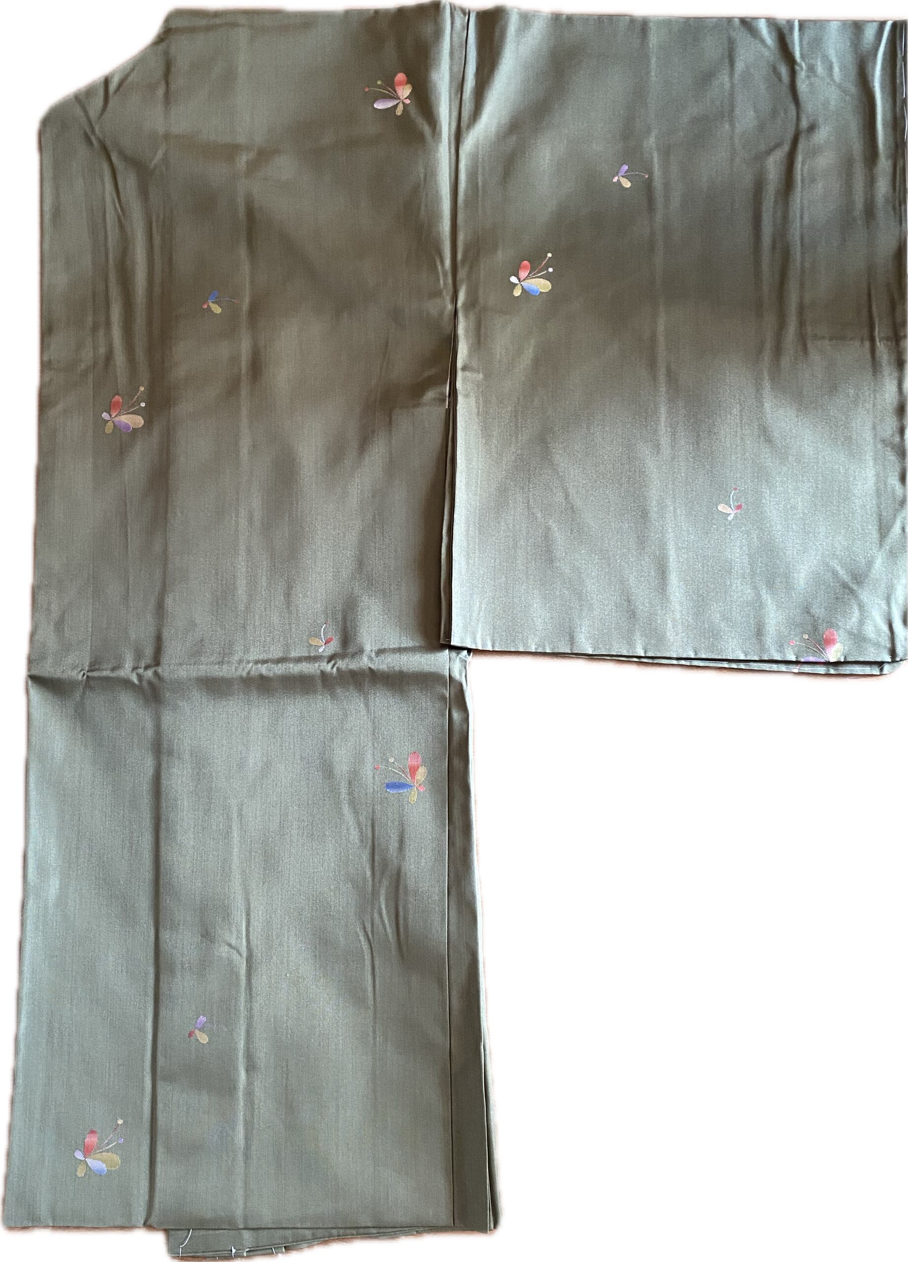 SALE価格! 羽織り 蝶々 紬 モスグリーン、若竹色