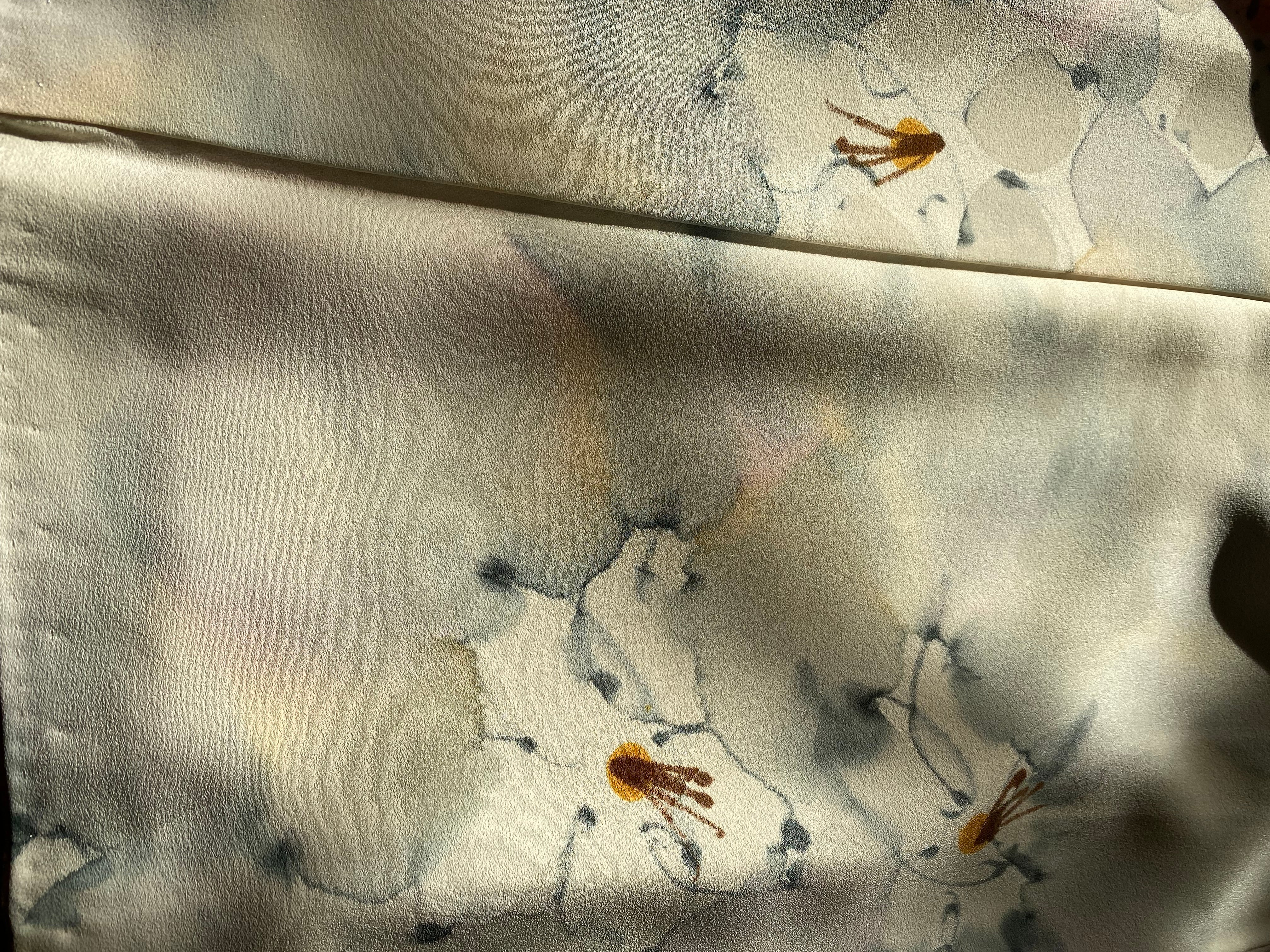 さらりとした風合い、アンティークの錦紗よりほどよい張りがあります。綸子ほど光沢はなく