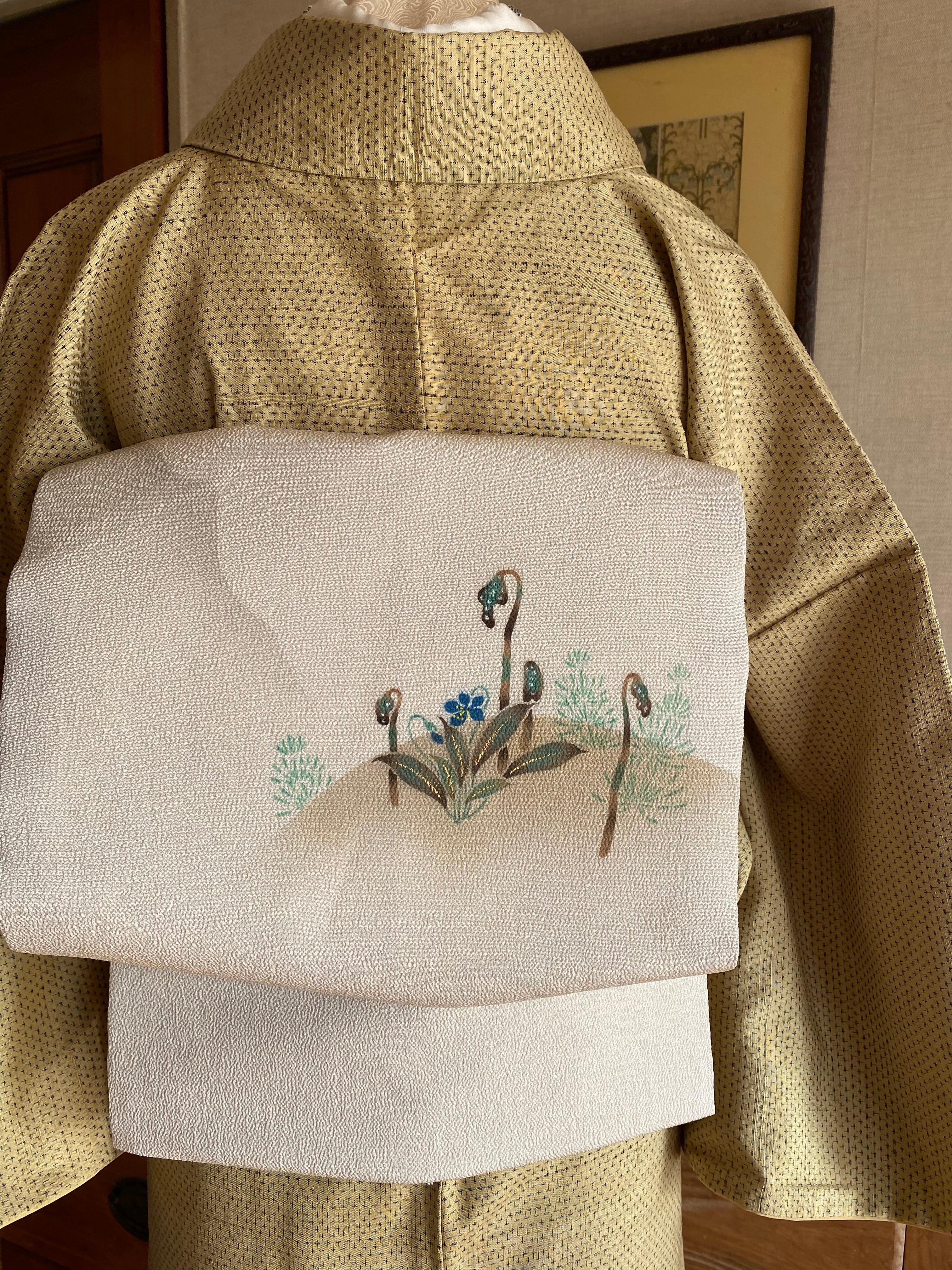 とても可憐で品のよい縮緬 染めの名古屋帯。
