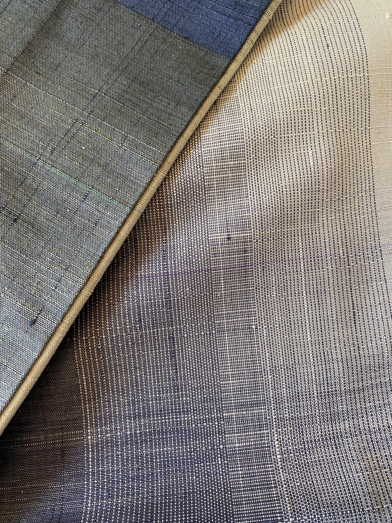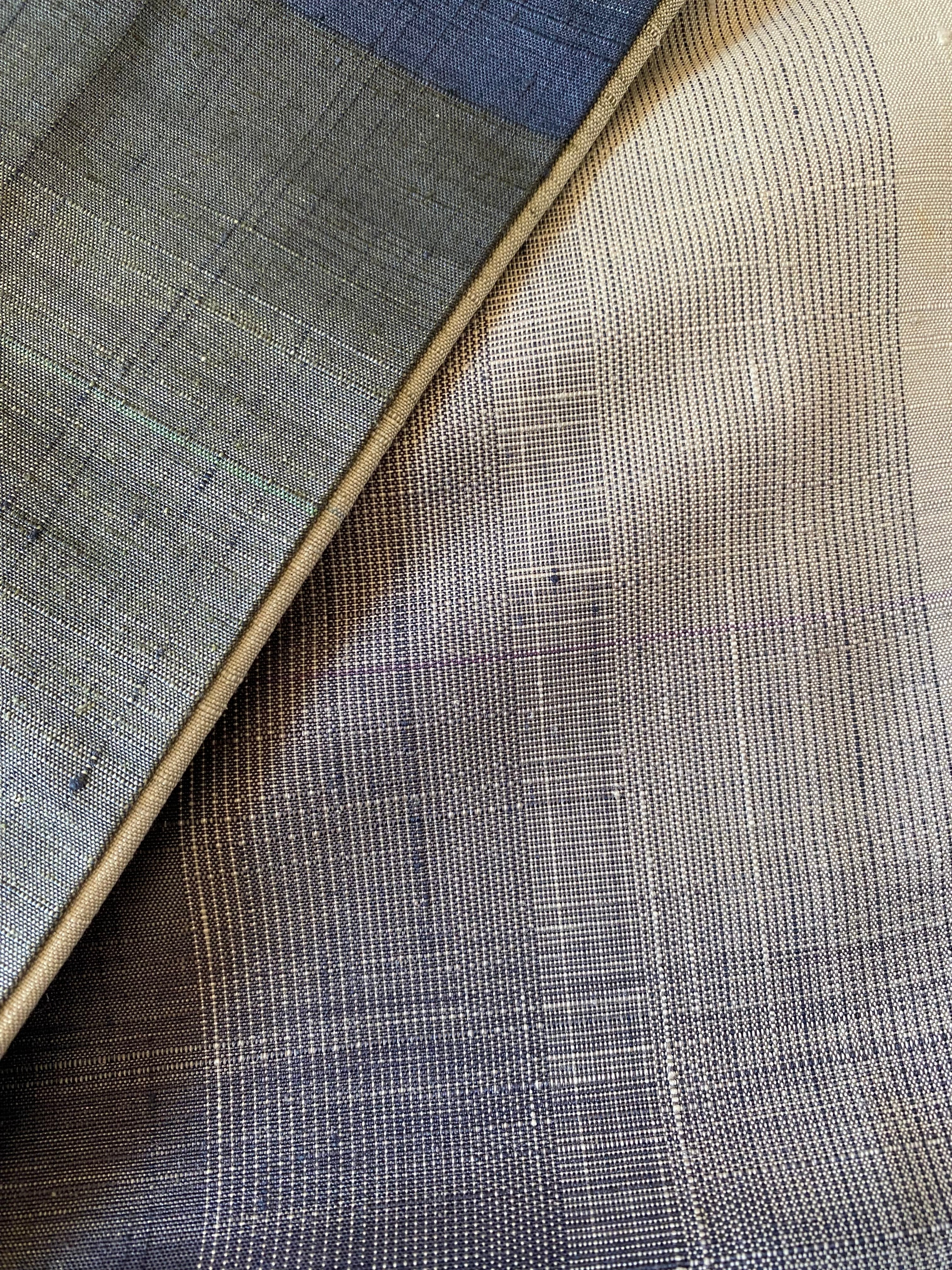 青、水色、ほんのり紫、ペパーミントグリーン、紅い織りの線が目立ち過ぎづほでよいバランスで入っています。