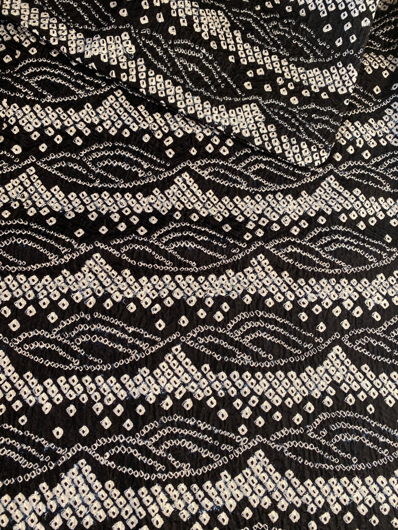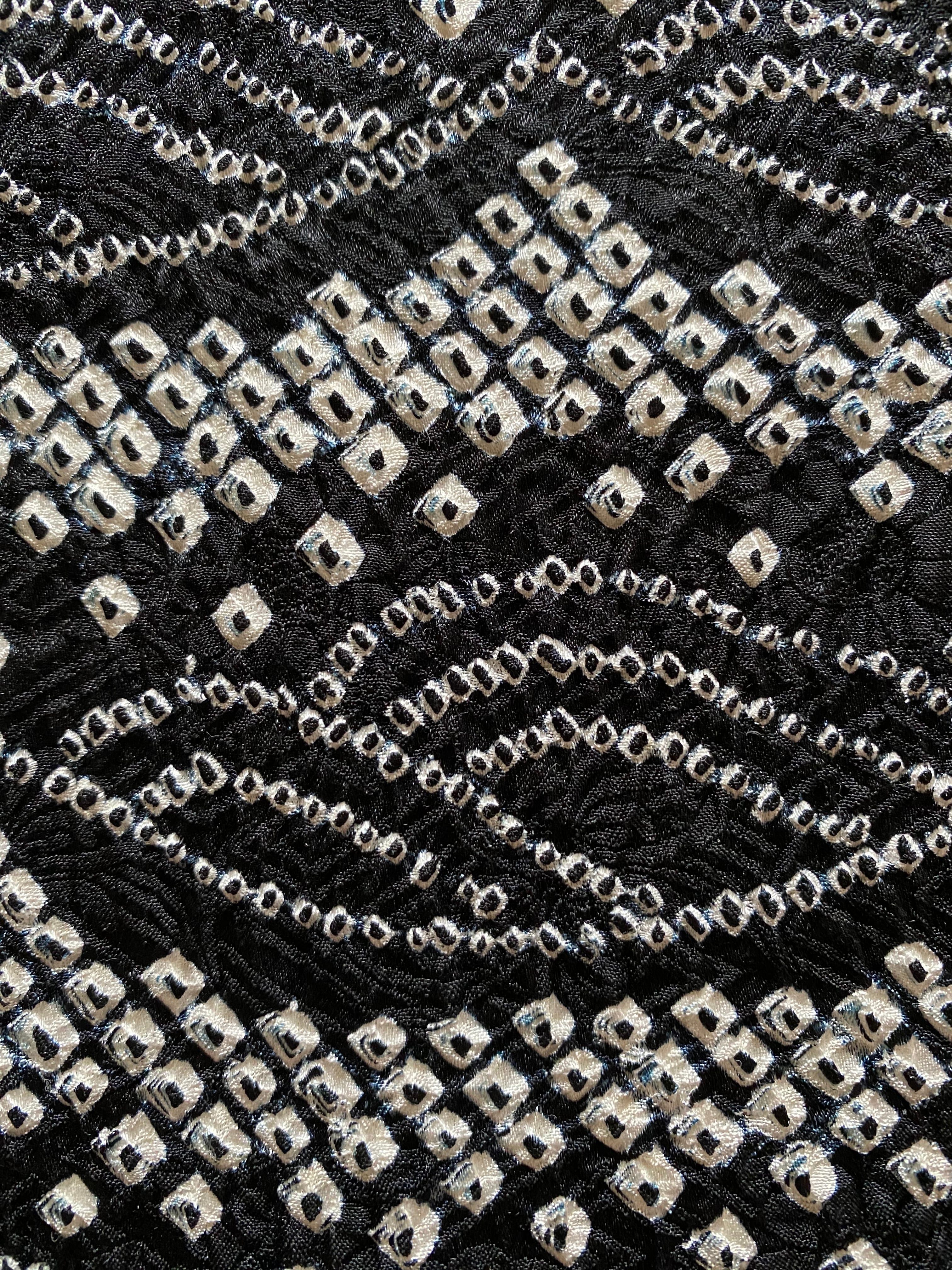 鹿の子絞り 付け下げ小紋 黒白 横段々