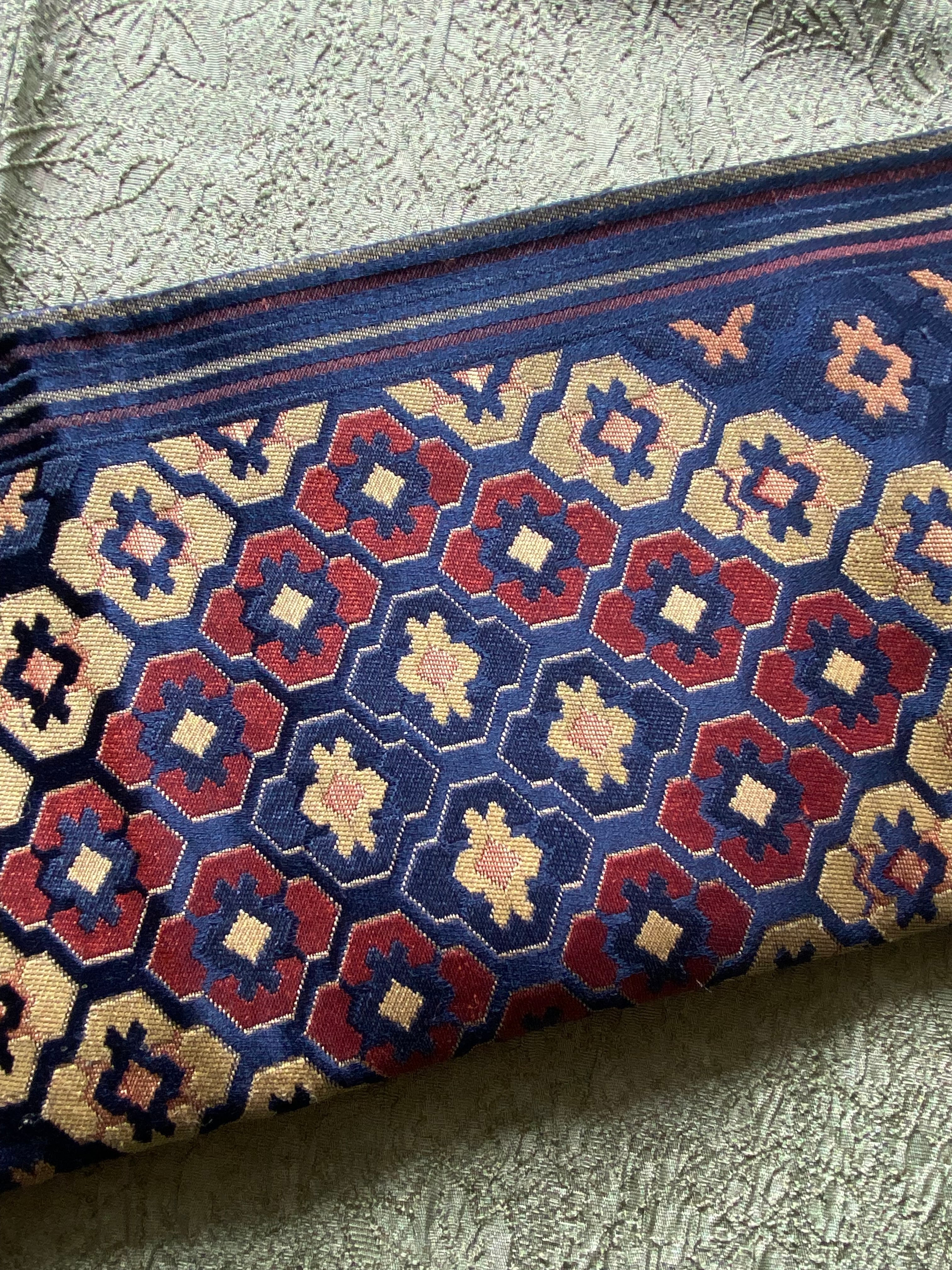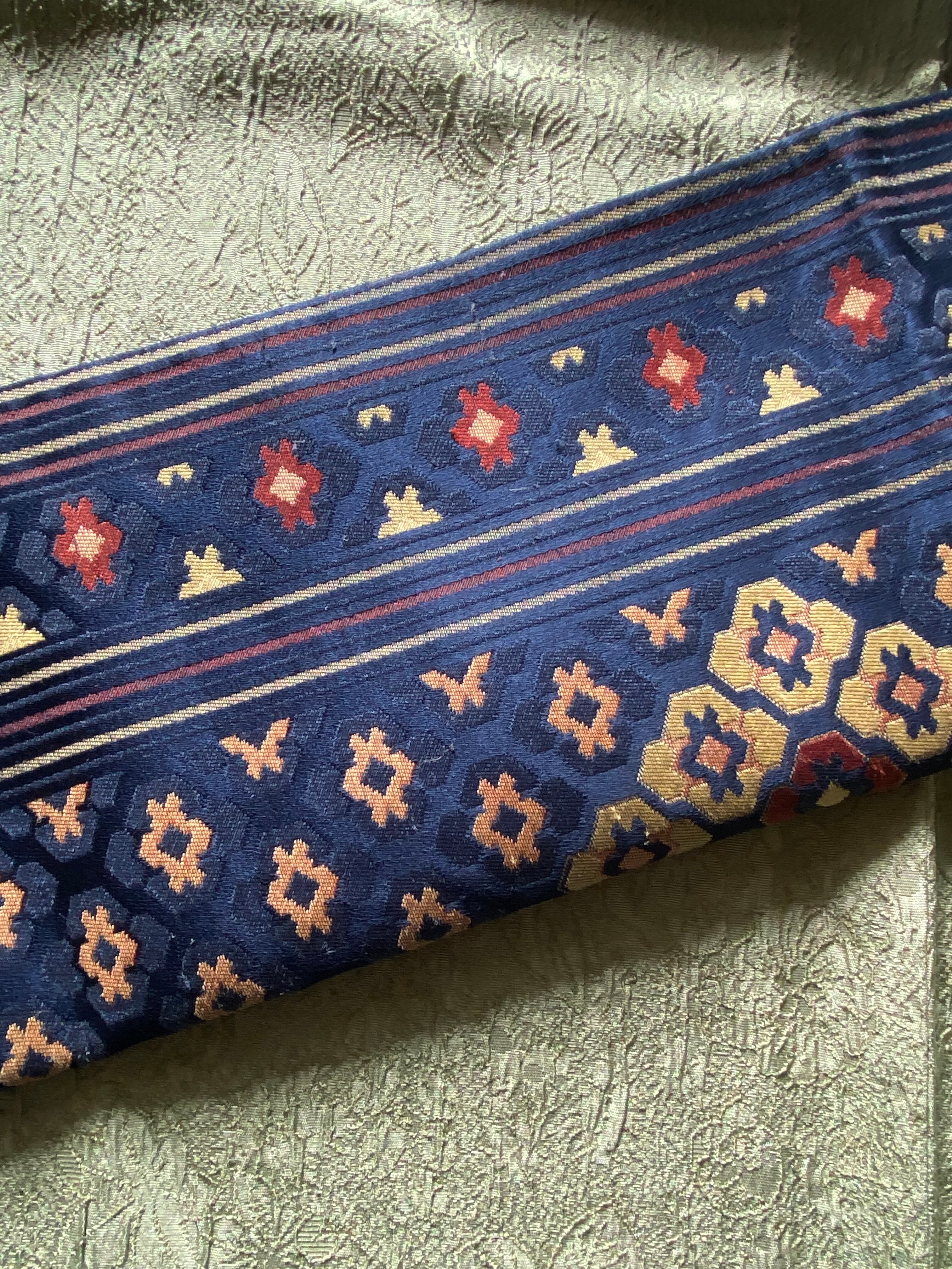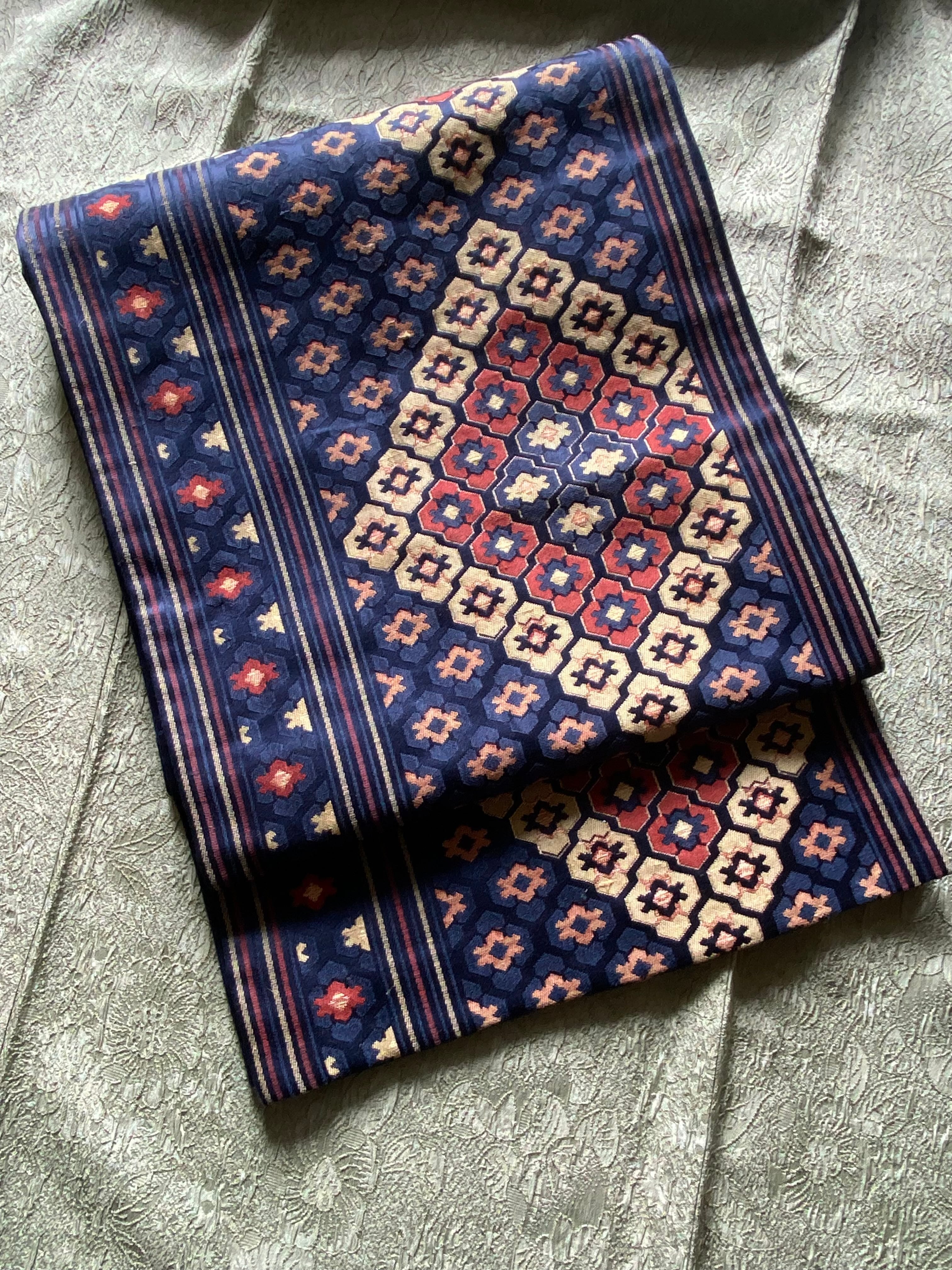 名古屋帯 織り 蜂の巣みたいな柄 濃紺紅黄