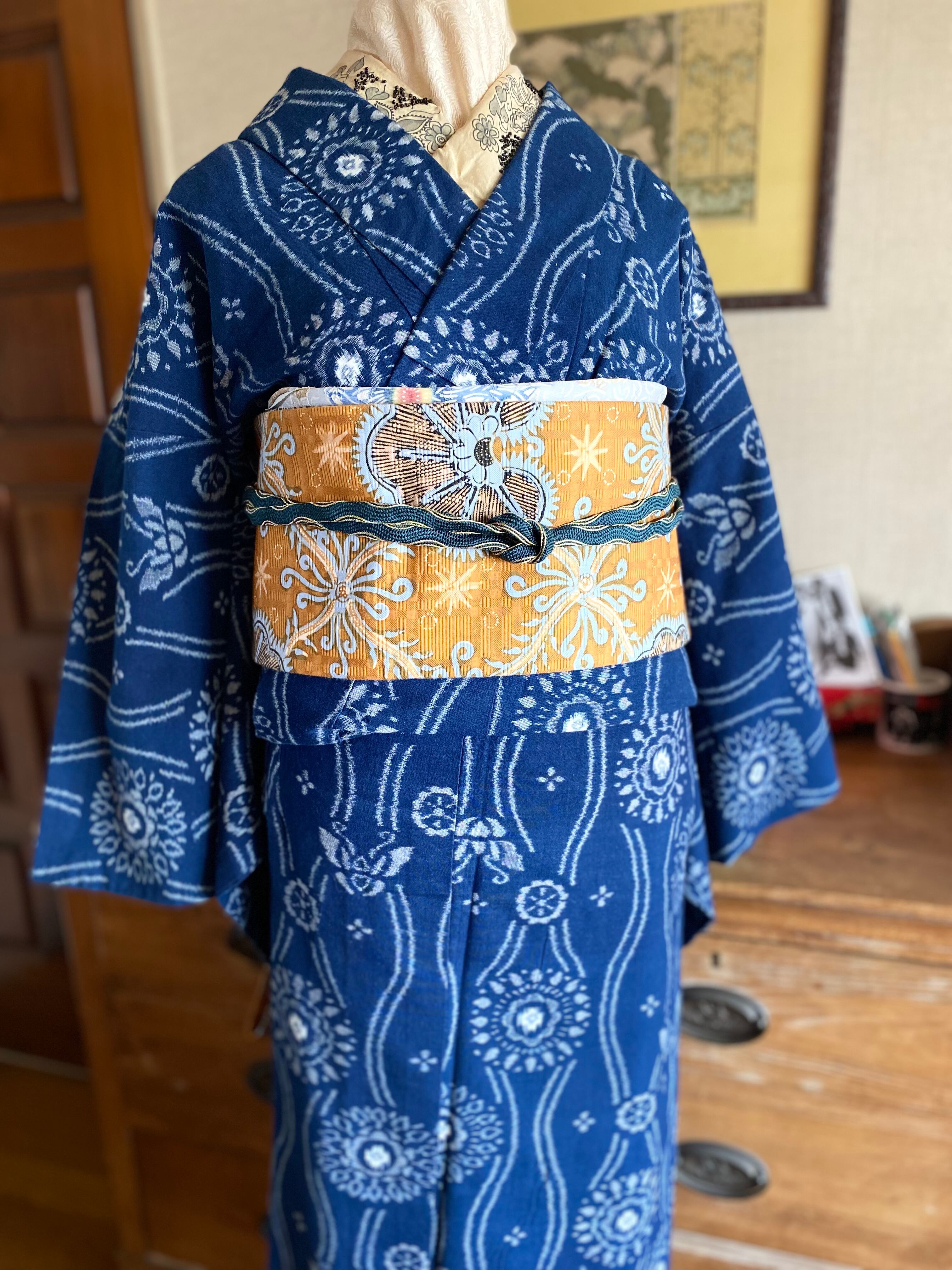 バティック着物perahu オリジナル チャップ 半幅帯 芥子水色