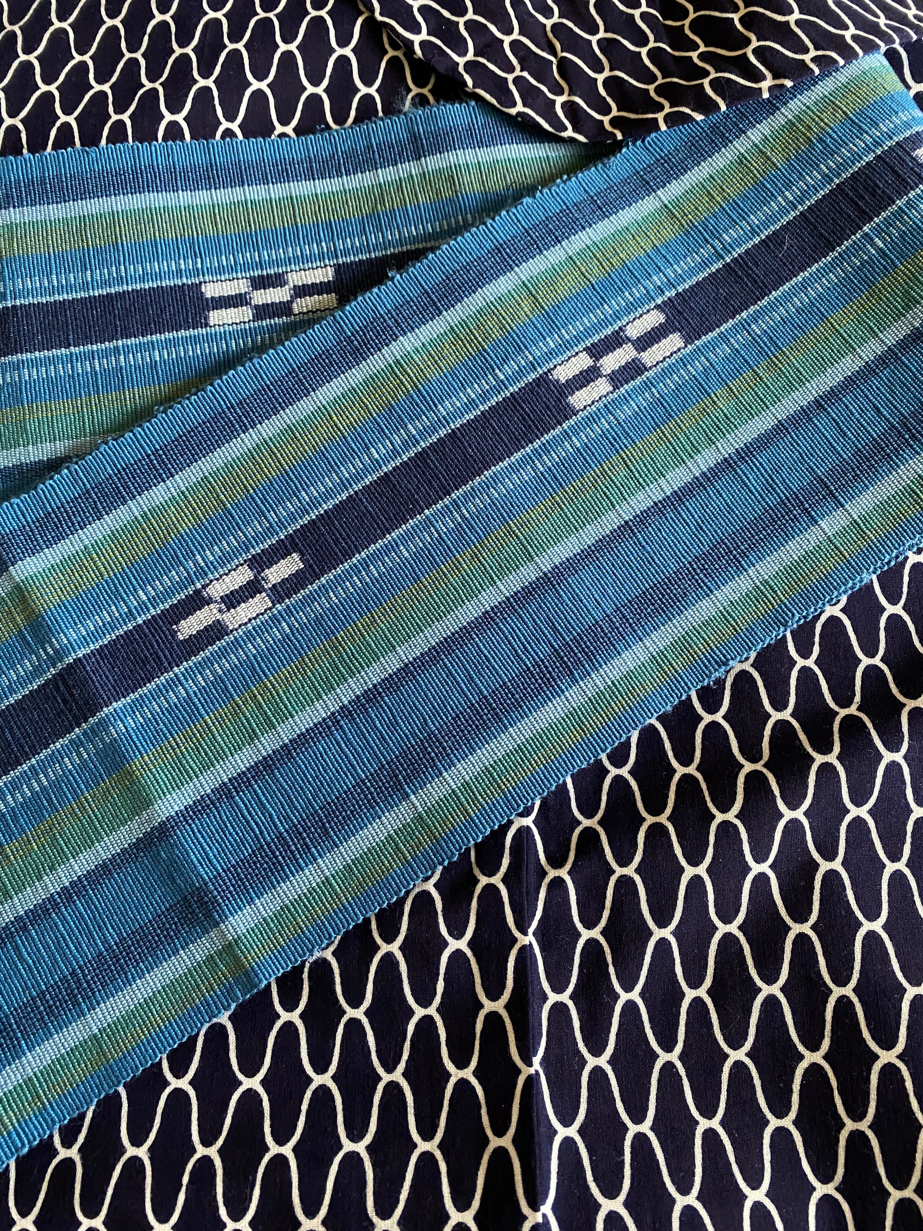 八重山 ミンサー 半幅帯 藍、青、緑色 未使用品
