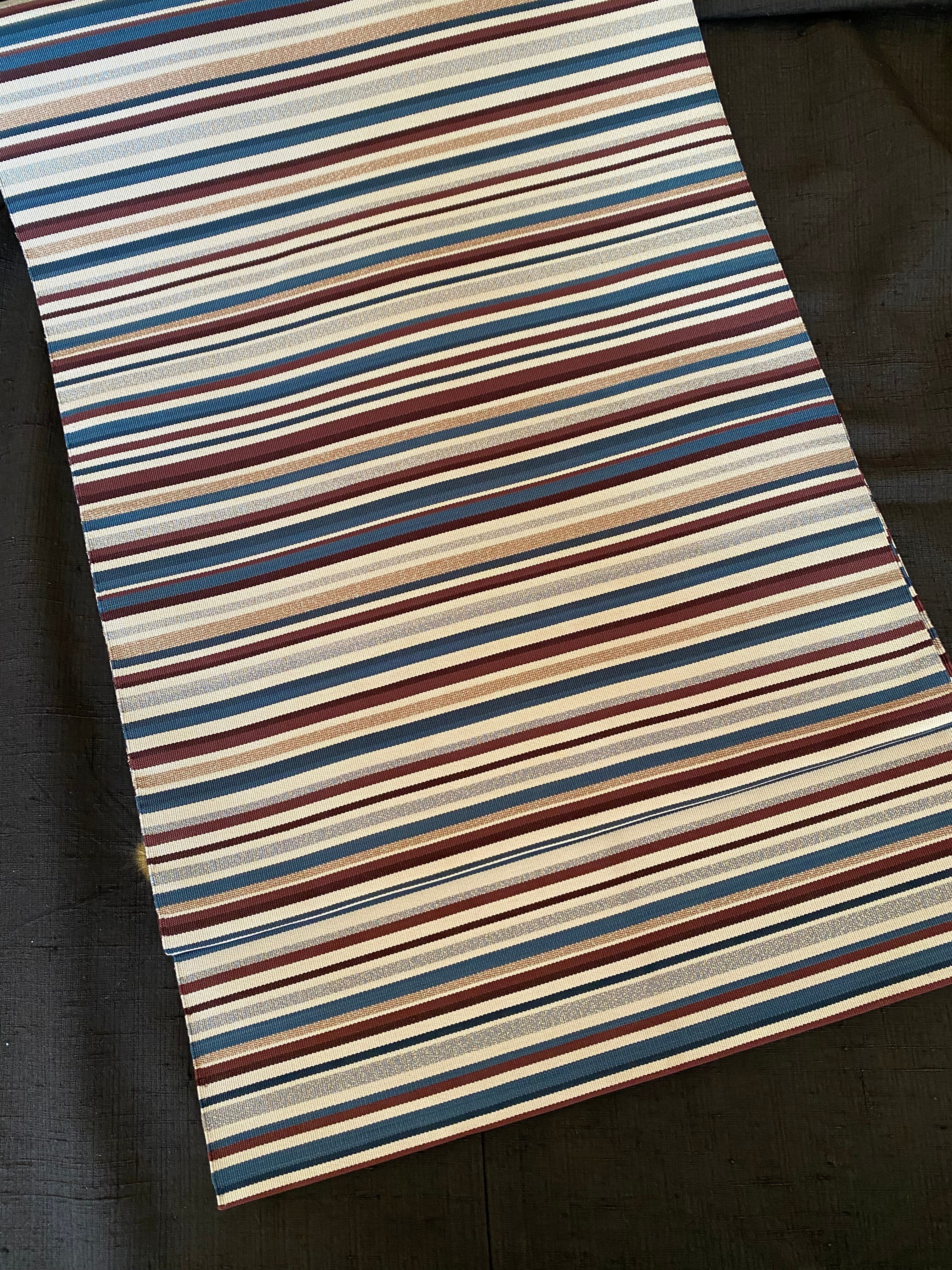 綴れ 縞 ボーダー、ストライプ 水色、紺、白、銀、紅
