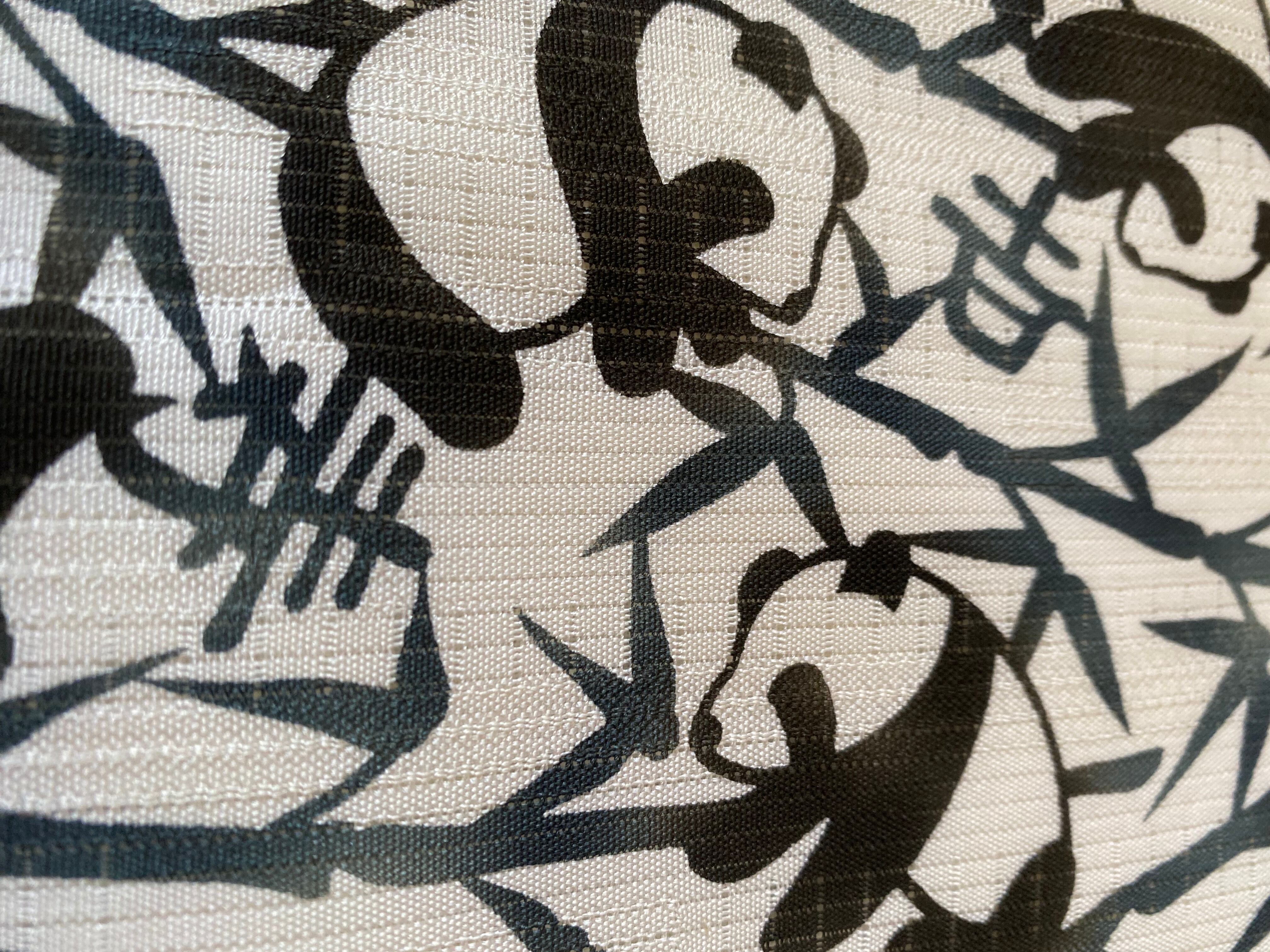 パンダ 伊勢型染め 生成り 黒 うす緑 名古屋帯
