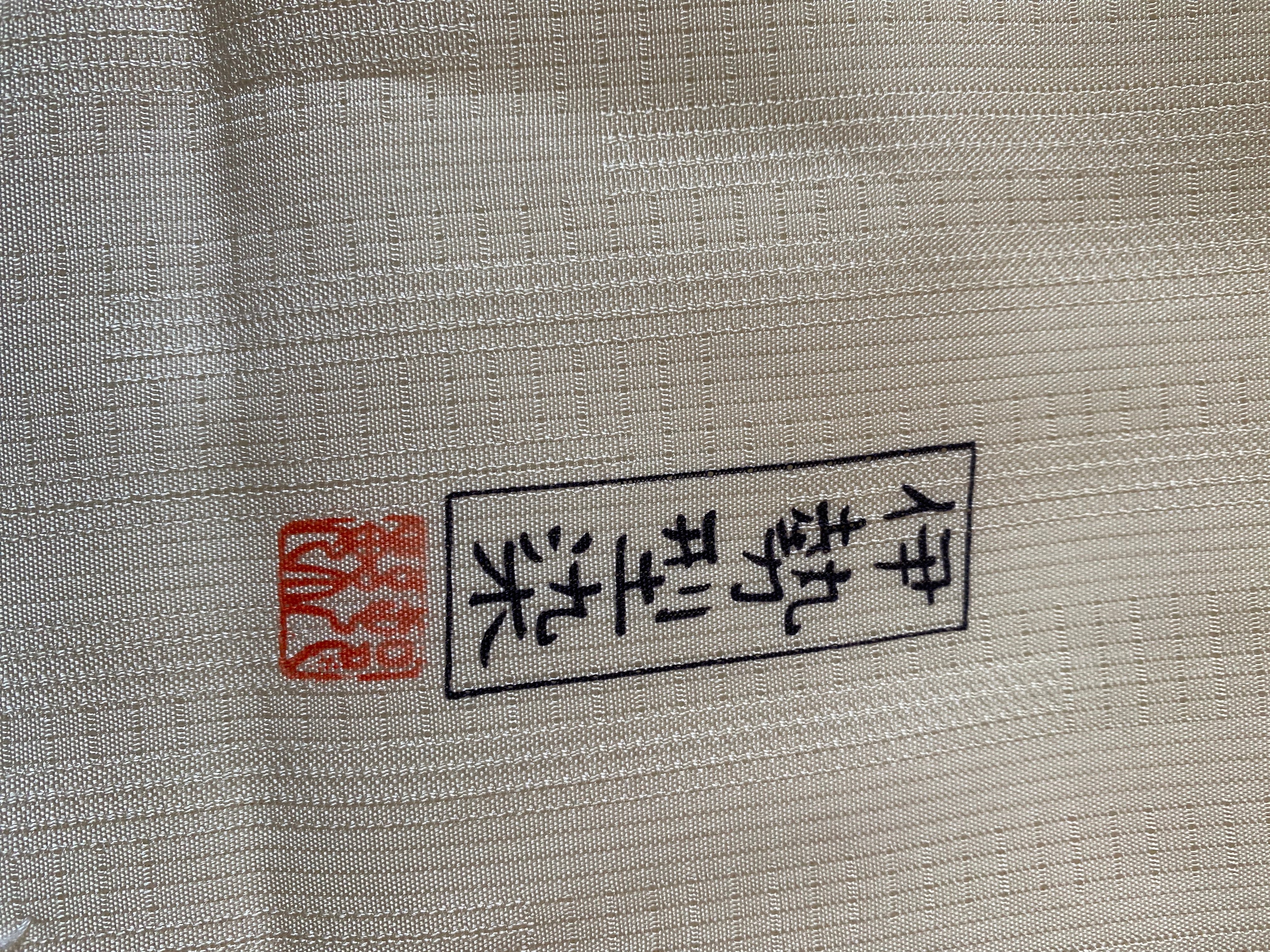 格子のような織り地のある帯地に伊勢型の型染めです。